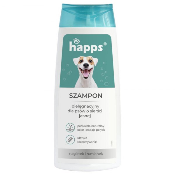 Delikatny szampon pielęgnacyjny dla psów w trzech wariantach: do sierści jasnej, ciemnej i mieszanej.