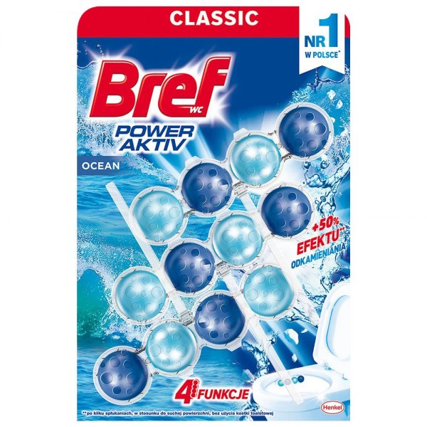 Innowacyjna formuła Bref Power Aktiv spełnia 4 funkcje, które zawarte są w dyskretnym i nowoczesnym opakowaniu. Nowa generacja kostek do toalet hamuje osadzanie się kamienia i pomaga utrzymać toaletę czystą i świeżą poprzez połączenie ochrony przed zabrudzeniami i extraświeżości.