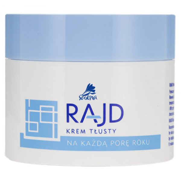 Przeznaczony do codziennej pielęgnacji cery, krem tłusty Rajd sprawdza się doskonale o każdej porze roku. Świetnie nadaje się do pielęgnacji cery suchej jako krem na dzień i na noc, zaś dla cery normalnej i mieszanej polecany jest do stosowania na noc.