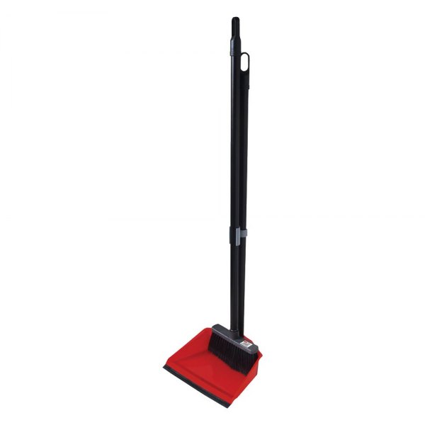 Zmiotka i szufelka na trzonku zaprojektowana alby poprawić komfort sprzątania - nie wymaga schylania się. Zmiotka z syntetycznym włosiem i plastikową oprawą. Posiada rozszczepione na końcach włókna co poprawia skuteczność zbierania śmieci i kurzu. Szufelka zakończona gumą, która zapewnia dokładne przyleganie do czyszczonej powierzchni.
