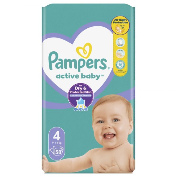Pampers Active Baby pieluchy rozmiar 4 9-14kg 58szt