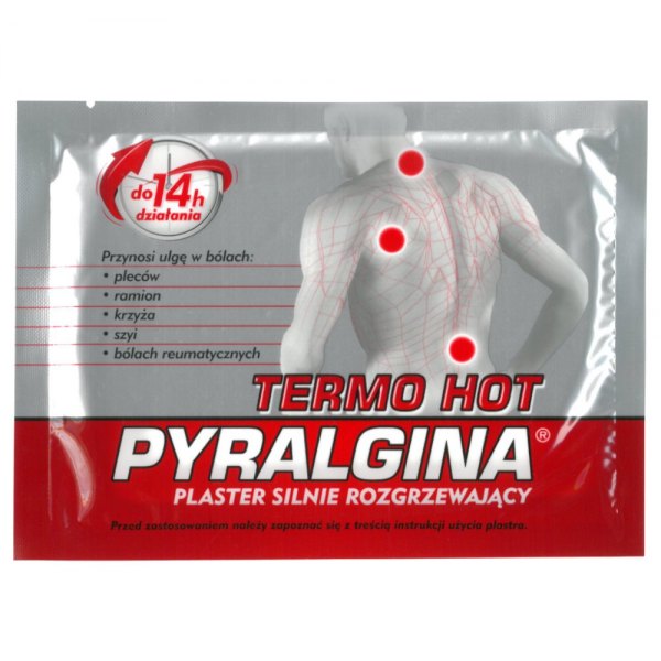 Wyrób medyczny Pyralgina Termo Hot to plaster rozgrzewający, który skutecznie i naturalnie rozluźnia głębokie partie mięśni. Można go stosować u dorosłych i dzieci powyżej 12. roku życia.