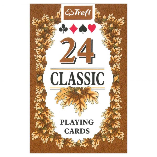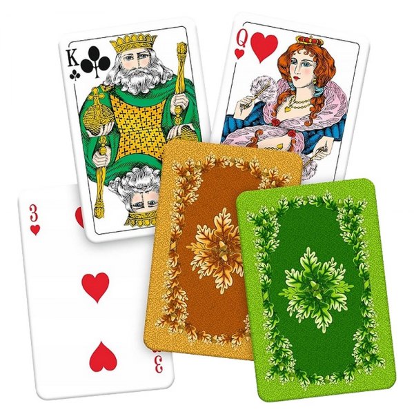 Bursztynowe i zielone rewersy ozdobione są liśćmi dębu, a figury i kolory oznaczone międzynarodowym wzorem. Karty są odpowiednie do wszystkich rodzajów klasycznych gier karcianych. Talia zawiera 24 karty.