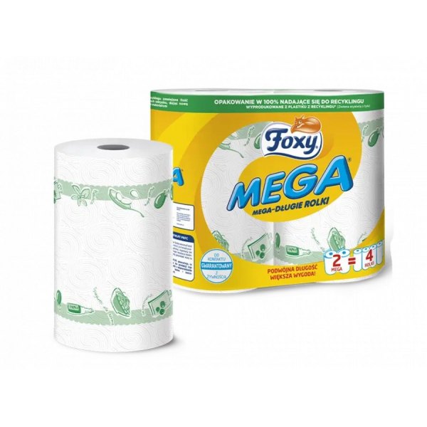 Każde opakowanie Foxy MEGA Ręczników Papierowych zawiera 2 rolki, co zapewnia długotrwałe użytkowanie. Praktyczne opakowanie zapewnia łatwe przechowywanie i wygodny dostęp do ręczników papierowych.