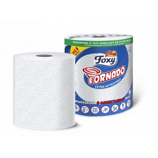 Każde opakowanie Foxy Tornado zawiera 1 rolkę, która zapewni Ci wydajność i długotrwałe użytkowanie. Praktyczne opakowanie zapewnia łatwe przechowywanie i wygodny dostęp do ręcznika papierowego.