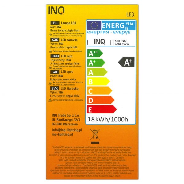 - pobór prądu: 18kWh/1000h