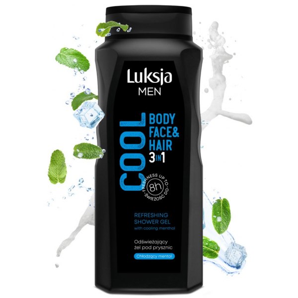 Odświeżający żel pod prysznic 3w1 Luksja Men Cool przeznaczony do ciała, twarzy i włosów usuwa zanieczyszczenia, jednocześnie dbając o skórę. Został wzbogacony o pielęgnujące składniki oraz mentol, który działa odświeżająco na skórę głowy oraz pobudzająco na ciało. Pozostawia uczucie długotrwałego orzeźwienia i równowagi.