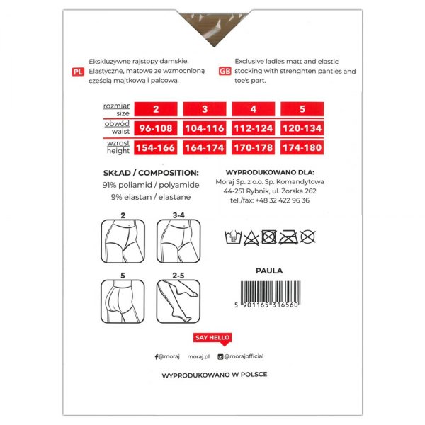 Klasyczne, damskie rajstopy wykonane z wysokiej jakości przędzy. Idealnie dopasowują się do kształtu nogi, przez lekkie błyszczenie, wydłużają oraz wyszczuplają optycznie.