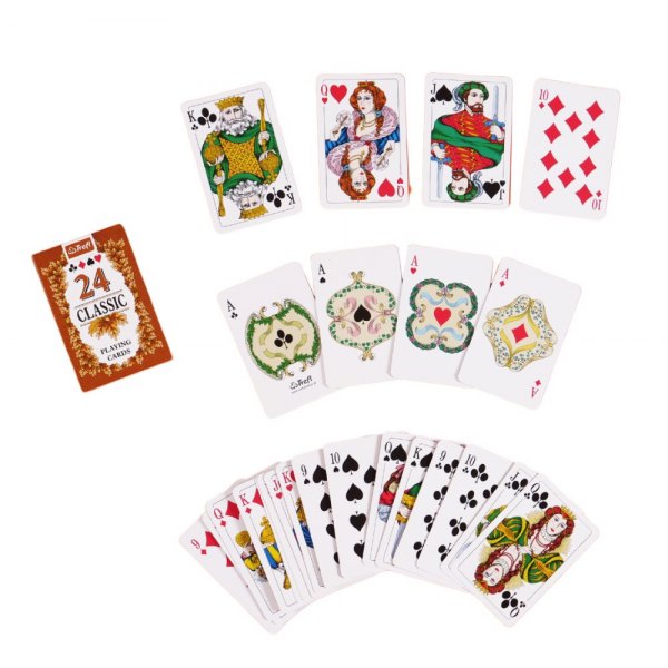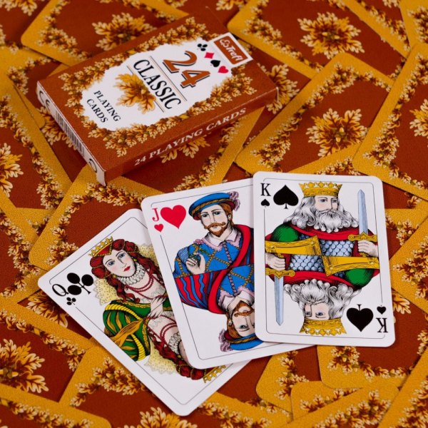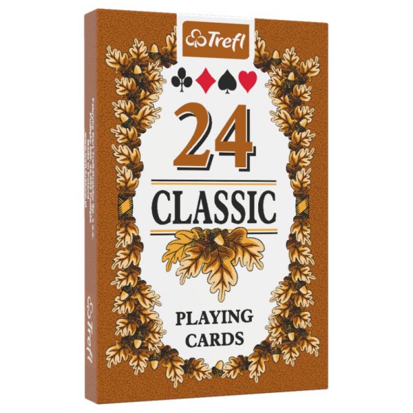 Bursztynowe i zielone rewersy ozdobione są liśćmi dębu, a figury i kolory oznaczone międzynarodowym wzorem. Karty są odpowiednie do wszystkich rodzajów klasycznych gier karcianych. Talia zawiera 24 karty.