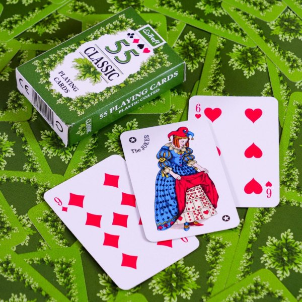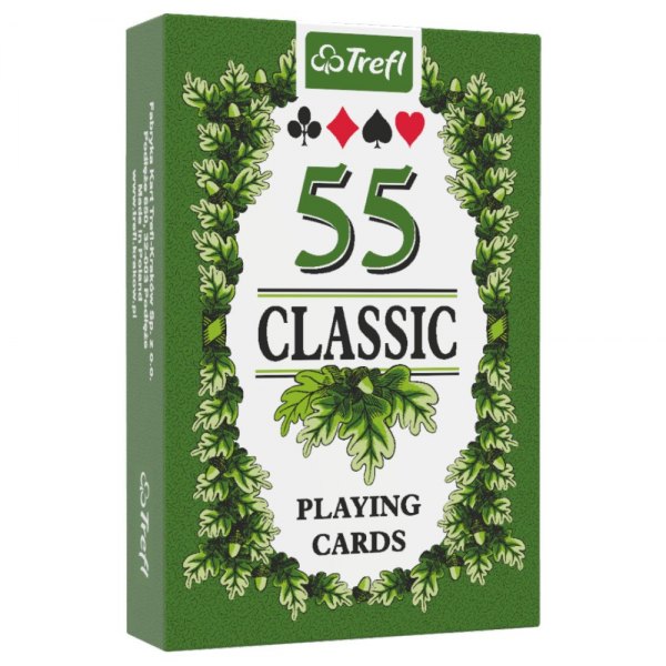 Bursztynowe i zielone rewersy ozdobione są liśćmi dębu, a figury i kolory oznaczone międzynarodowym wzorem. Karty są odpowiednie do wszystkich rodzajów klasycznych gier karcianych. Talia zawiera 55 kart.