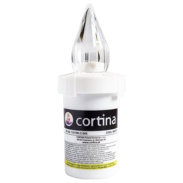 * Oznacza czas świecenia, który zależy od warunków otoczenia i baterii, które zostaną użyte (w związku z możliwością wymiany baterii na nowe; sposób wymiany - opisany w ulotce znajdującej się w zniczu). W związku z charakterystyką pracy baterii, intensywność świecenia zmniejsza się w miarę upływu czasu.