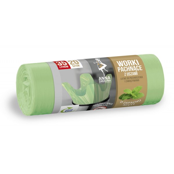 Anna Zaradna Worki na śmieci z uszami Miętowe 35L 20szt
